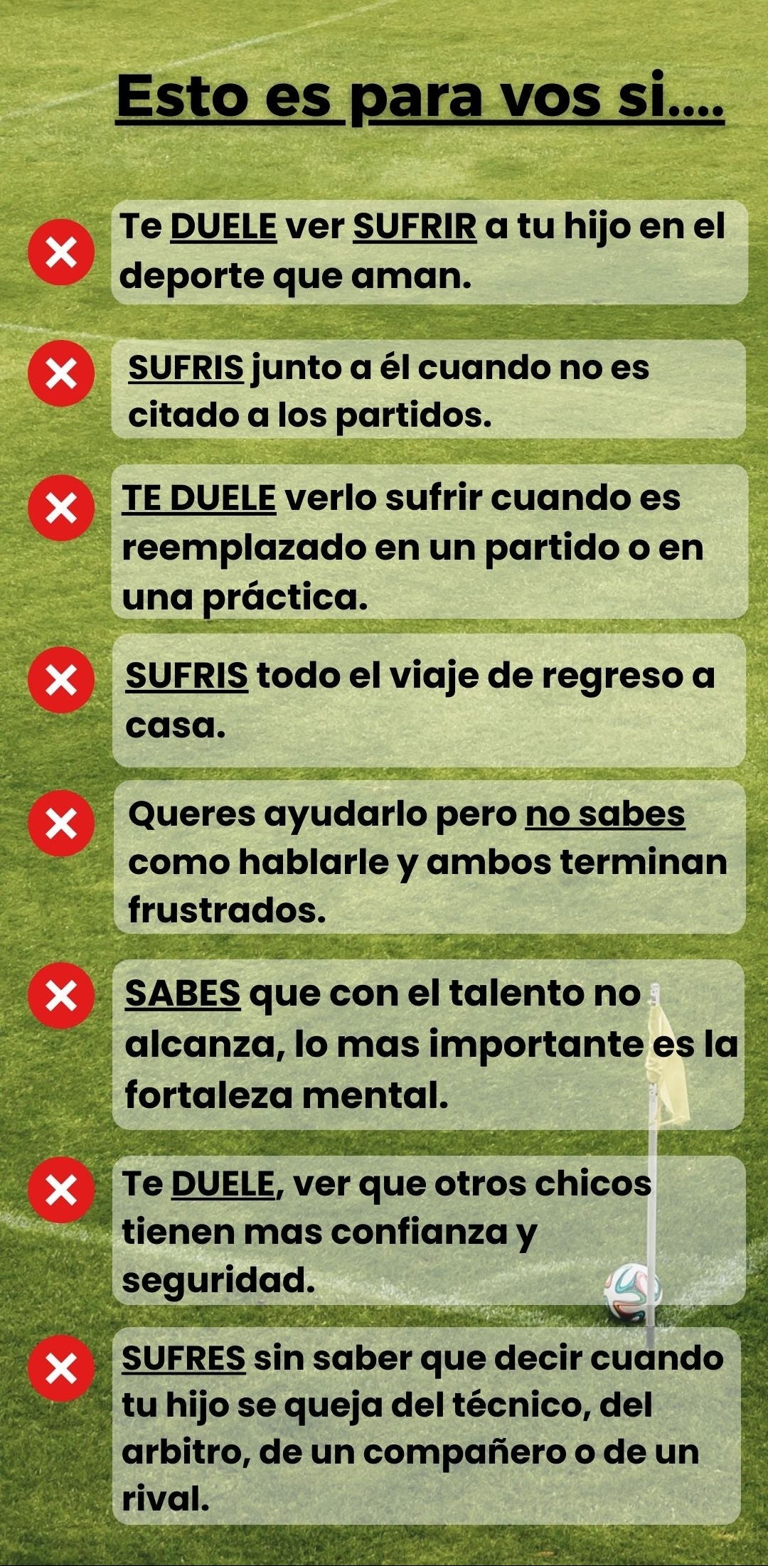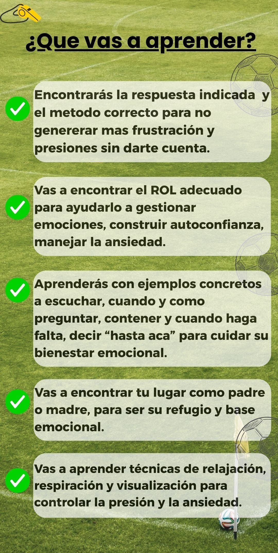 📘 Leé el ebook, aplicá los ejercicios y empezá a notar los cambios. Si después de 7 días sentís que tu hijo no muestra más confianza, motivación o disfrute al jugar… te devuelvo tu dinero, sin preguntas y sin vueltas. Así de simple. Porque si tu hijo no mejora, yo tampoco gané.